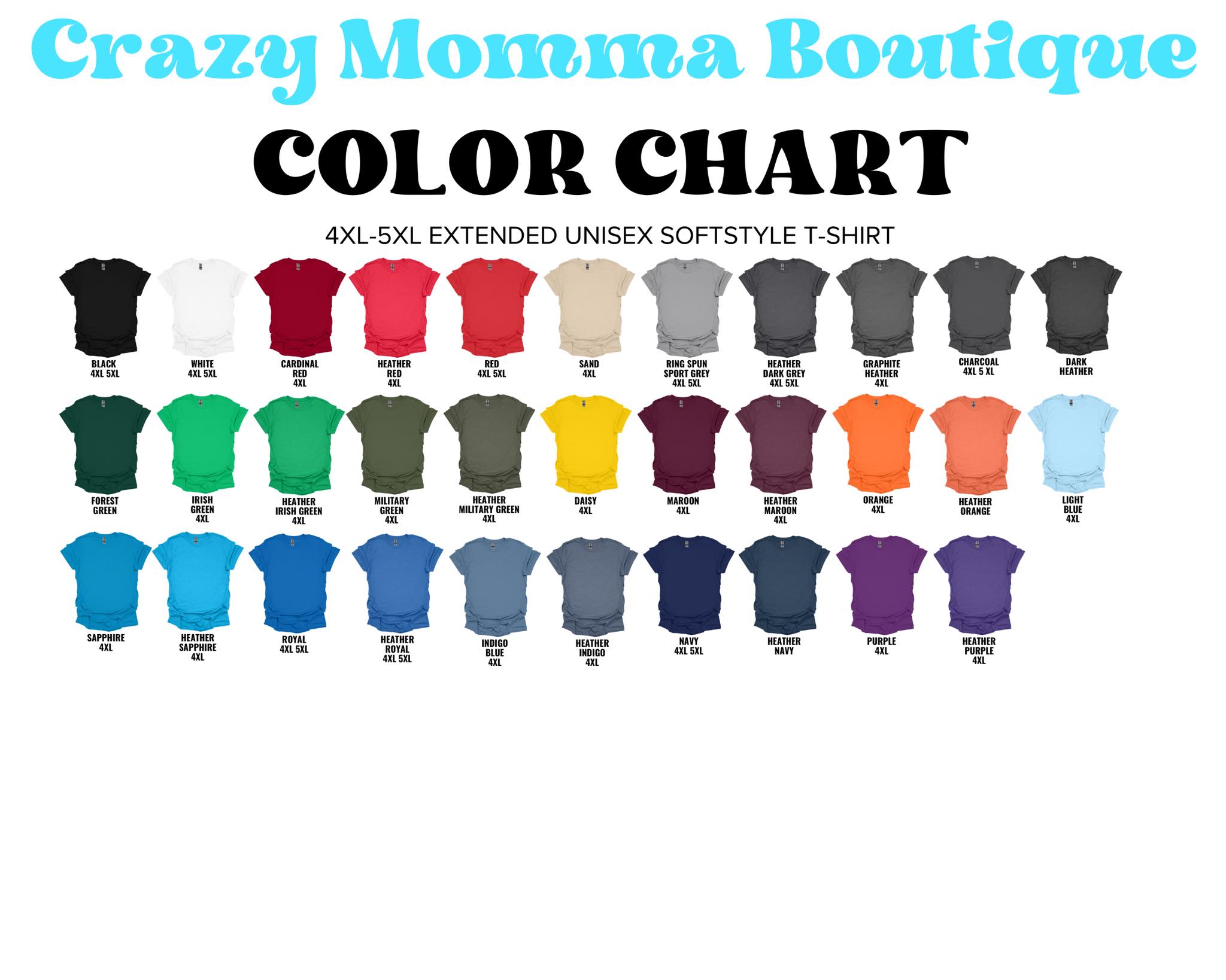 Choose your favorite color of tee from the color chart and be sure to find your correct size following the size chart.