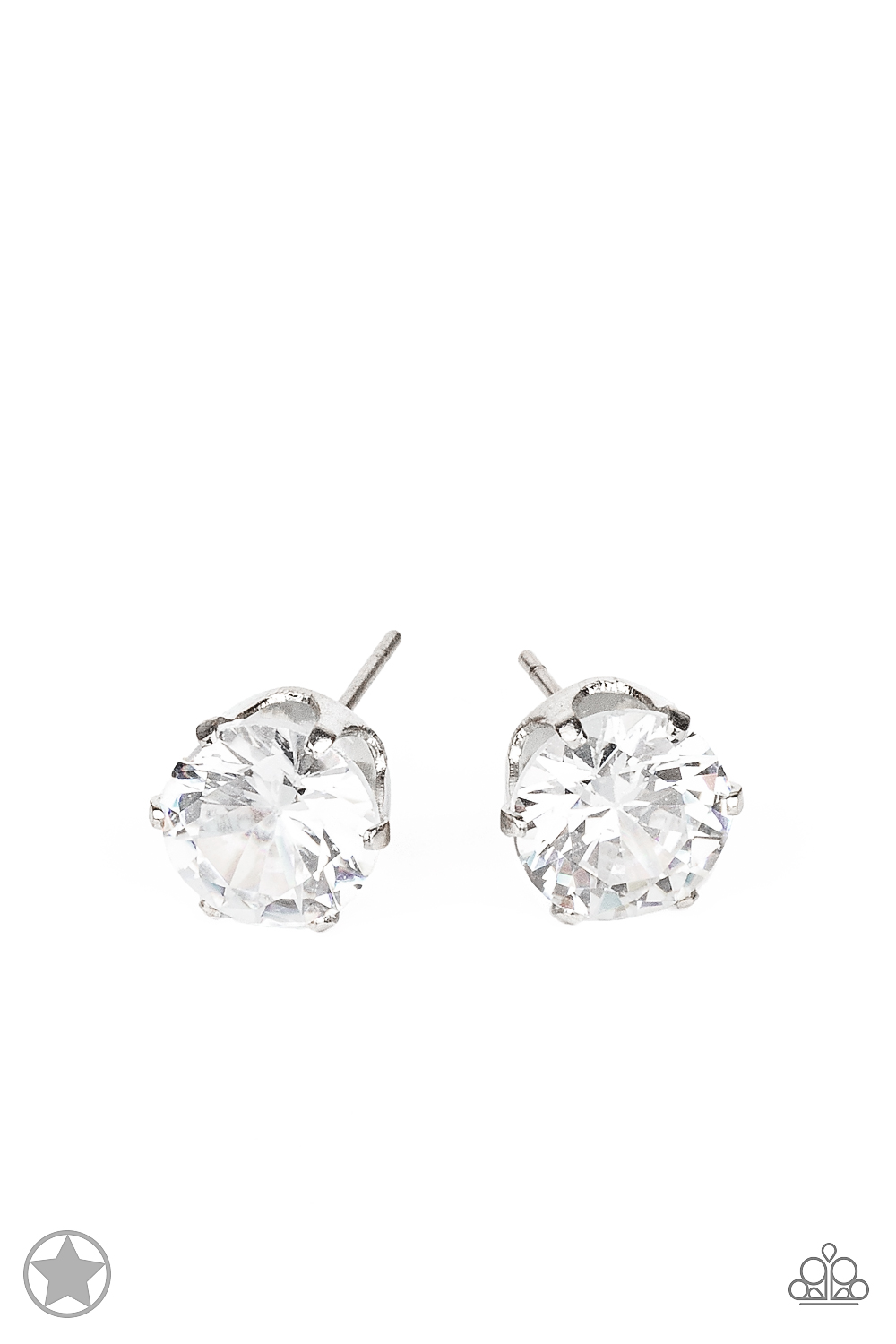 A sparkling white rhinestone is nestled inside a classic silver frame for a timeless look. Earring attaches to a standard post fitting.